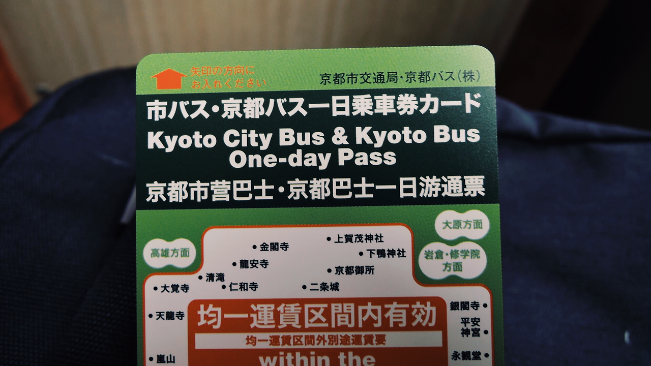 하루 동안 교토 버스를 마음껏 탈 수 있는 패스다. 500엔에 구입할 수 있는데 버스를 3번 이상 타면 무조건 이득이니 사는 게 좋다.