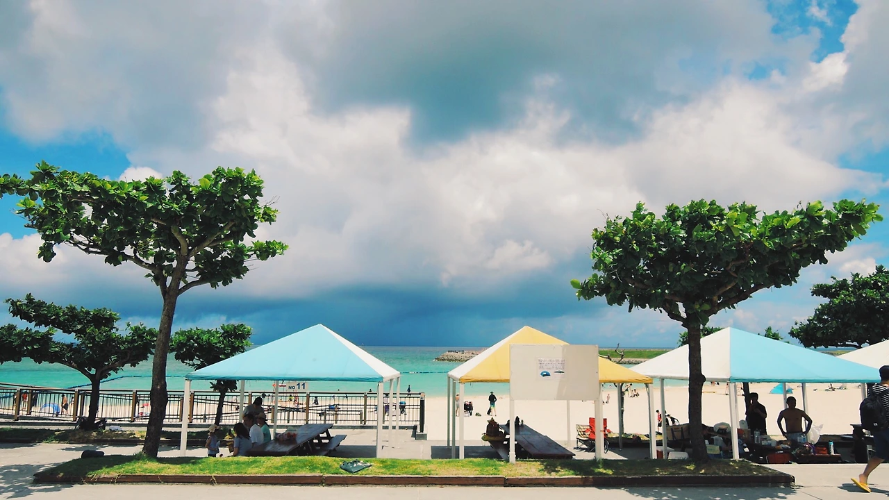 '오키나와'하면 단연 바다가 아니겠는가! 차를 타고 숙소에서 그리 멀지 않은 트로피칼 비치로 향했다. 이름이 마음에 들어 갔을 뿐인데, 지금 기억하기론 오키나와에서 봤던 바다 중에 제일 예뻤다.