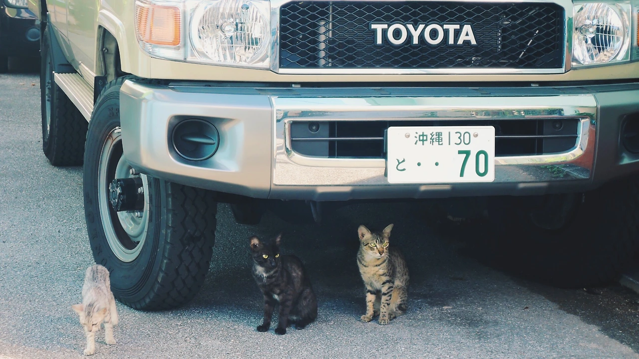 다음 날 아침! 본격적인 오키나와 여행을 시작하기 전에 숙소 앞마당에서 개냥이 세 마리를 만났다. 배고팠는지 빵 던져주니 잘 먹더라.