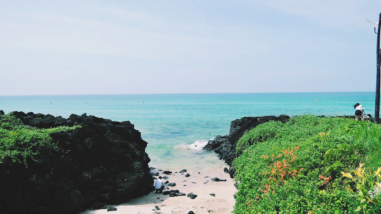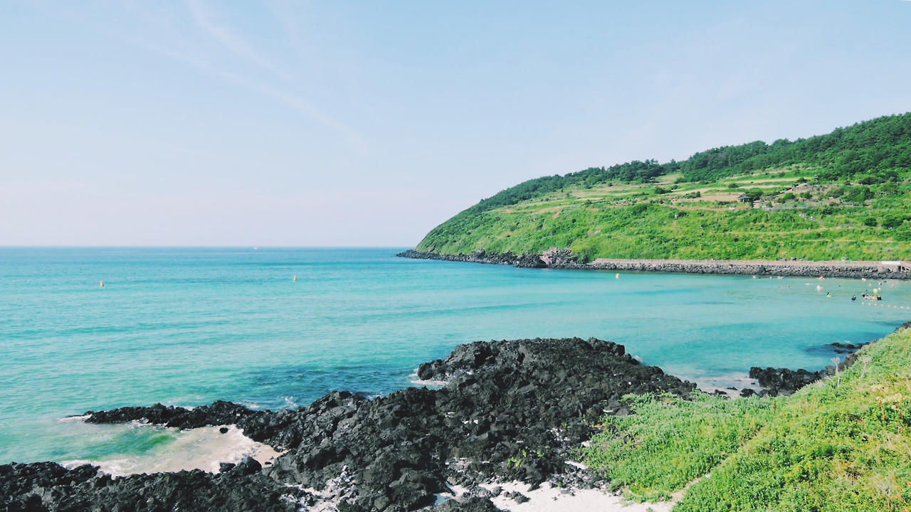 오키나와보다 제주도가 더 좋은 나는 뼛속까지 한국인! 생각보다 바다에서 해수욕을 즐기는 사람들이 많아 살짝 놀랐다. 내가 생각하는 제주도의 해변은 무척 한적하고 잔잔한 모습인데. 그래서 조금 비켜 옆쪽으로 걸었다.
