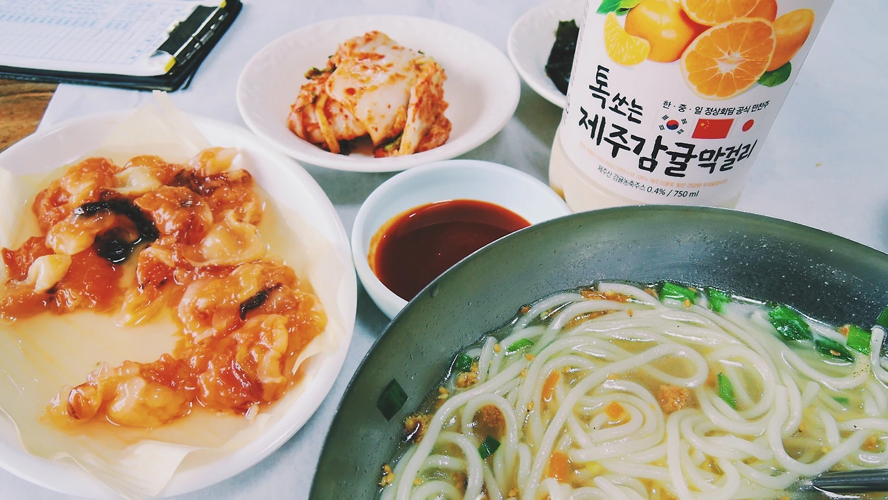 대충 일을 정리하고 공항 가기 전 마지막 식사를 하러 바로 옆 해녀촌엘 갔다. 동복리 해녀촌이 '회국수'로 아주 유명하다더라.