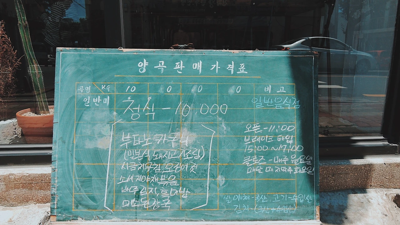 쇠소깍 근처에 오면 꼭 들려보라고 추천하고 싶은 곳이 생겼다. 외관이나 가게 분위기에 매력을 느껴 찾아간 곳이지만 주인이 정성을 들여 내는 음식이 훌륭하다. 정식 한 가지만 판매하는데, 일주일마다 메뉴가 바뀐다고 한다. 내가 찾은 날엔 일본식 돼지고기 조림인 '부타노카쿠니'가 나왔다. 이제껏 먹은 조림 중에 단연 최고였다고 말할 수 있을 정도. 유채나물에 돼지고기를 싸서 겨자를 살짝 곁들이면 최고다.
