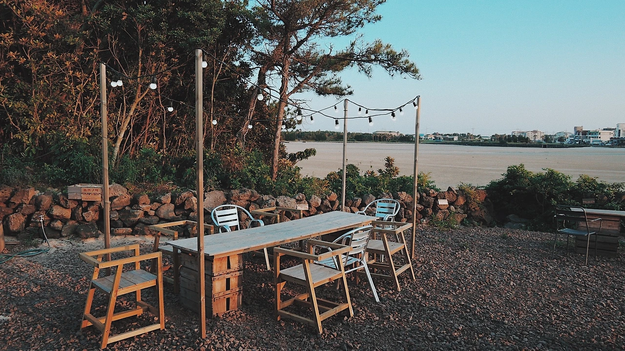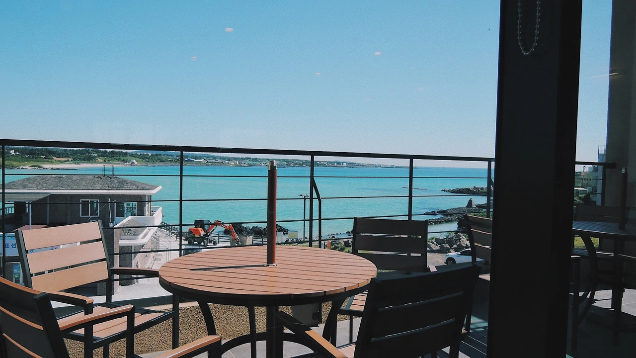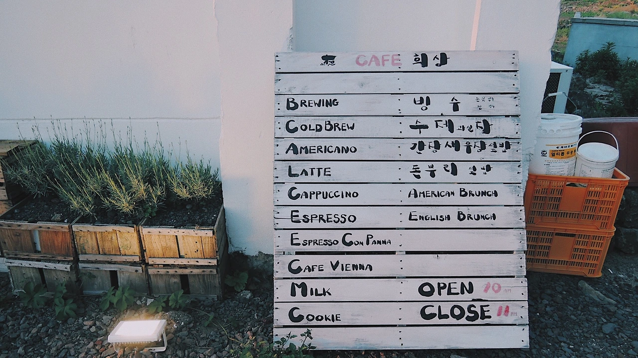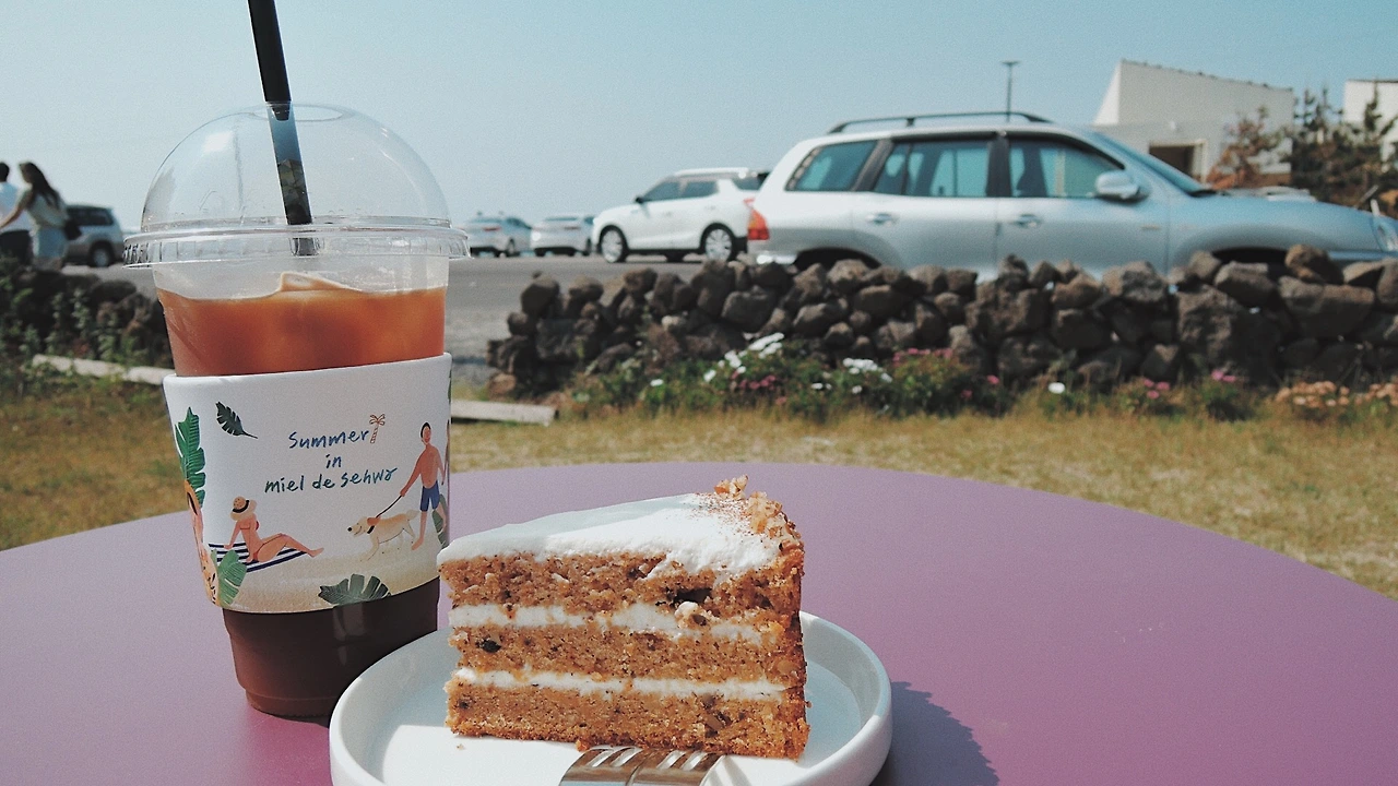 다시 표선으로 돌아와 근처 카페에서 저녁시간을 보냈다. 야외 테라스도 멋지고 실내 분위기도 아늑하다. 테이블 간 간격이 좁지 않아 여유가 있고, 2층엔 편하게 쉴 수 있는 좌석도 꽤 많다.