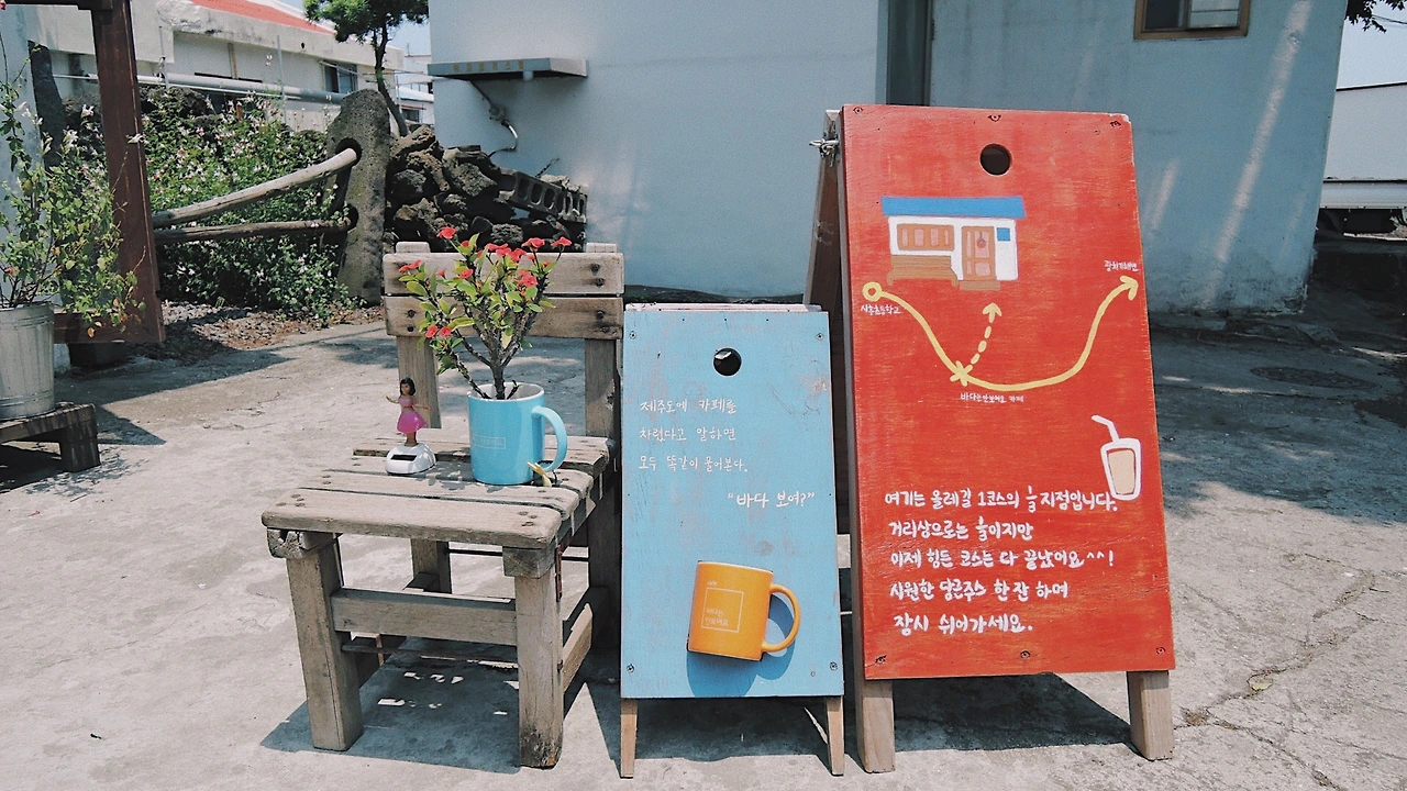 도보로 여행할 때는 가기 좀 꺼려졌던 남쪽을 둘러보고 싶었던 터라, 숙소는 표선해수욕장 근처 민박집으로 잡았다. 조경이 좋았고 가게에서 키우던 강아지 두 마리도 너무 살가워 괜히 대접받는 듯한 기분이 들었던 곳.