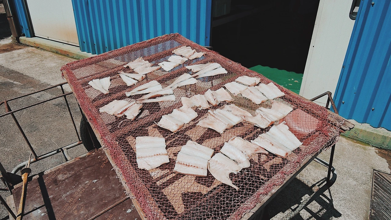 개인적으로 생선구이는 반건조해서 꾸덕꾸덕한 식감을 좋아하는 편이라, 이렇게 시장 한편에서 생선 말리는 모습이 신기했다.