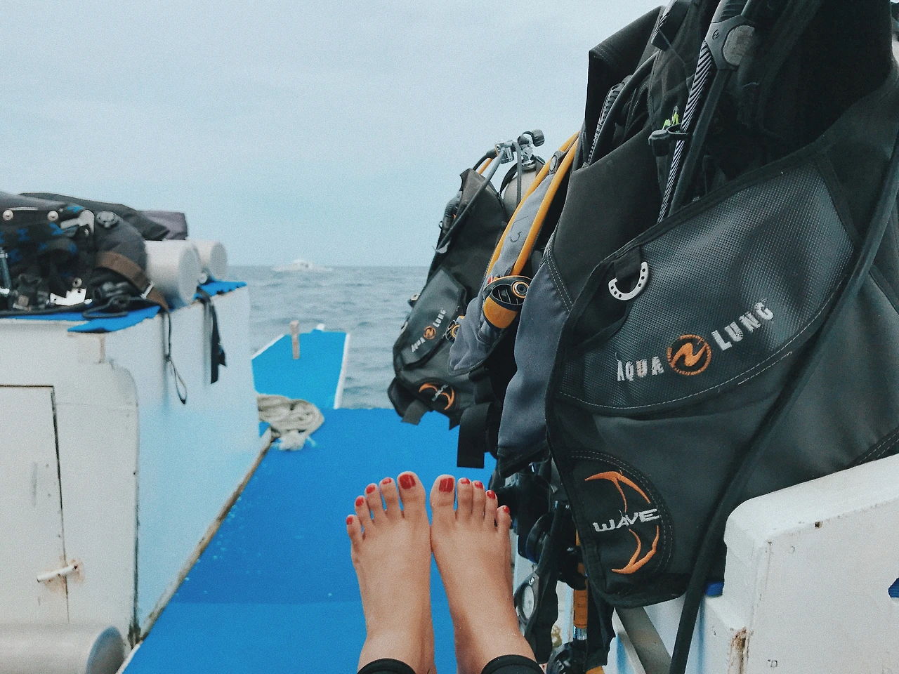 다이빙을 하던 팡라오. 이번이 처음이었는데 고강도 훈련 덕분에 자격증은 무리 없이 땄다. 약간 흐린 날이 많았는데 날이 너무 뜨겁지 않아 오히려 다행이었다는 생각이 든다. 파도도 약간 있어 더 긴장하면서 다이빙할 수 있었다.