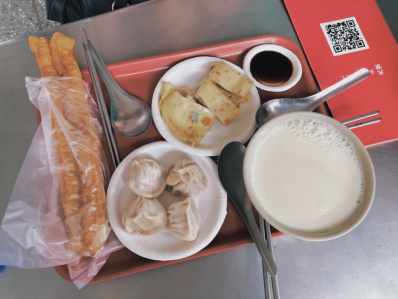 비가 오던 마지막 날 아침, 대만 사람들은 아침식사를 밖에서 하는 경우가 많아 아침에만 여는 식당이 잘 발달되어 있다더라. 그래서 우리도 현지식 아침식사를 체험하러 근처로 나갔다. 따뜻하게 데운 콩물에 딤섬, 꽈배기 같은 빵과 계란부침. 정말 별것 없는 소박한 한상이었는데 황홀했다. 특히 저 빵을 콩물에 살짝 적셔 후루룩 먹을 때의 그 담백함과 고소함은 아직도 생각이 많이 남는다.