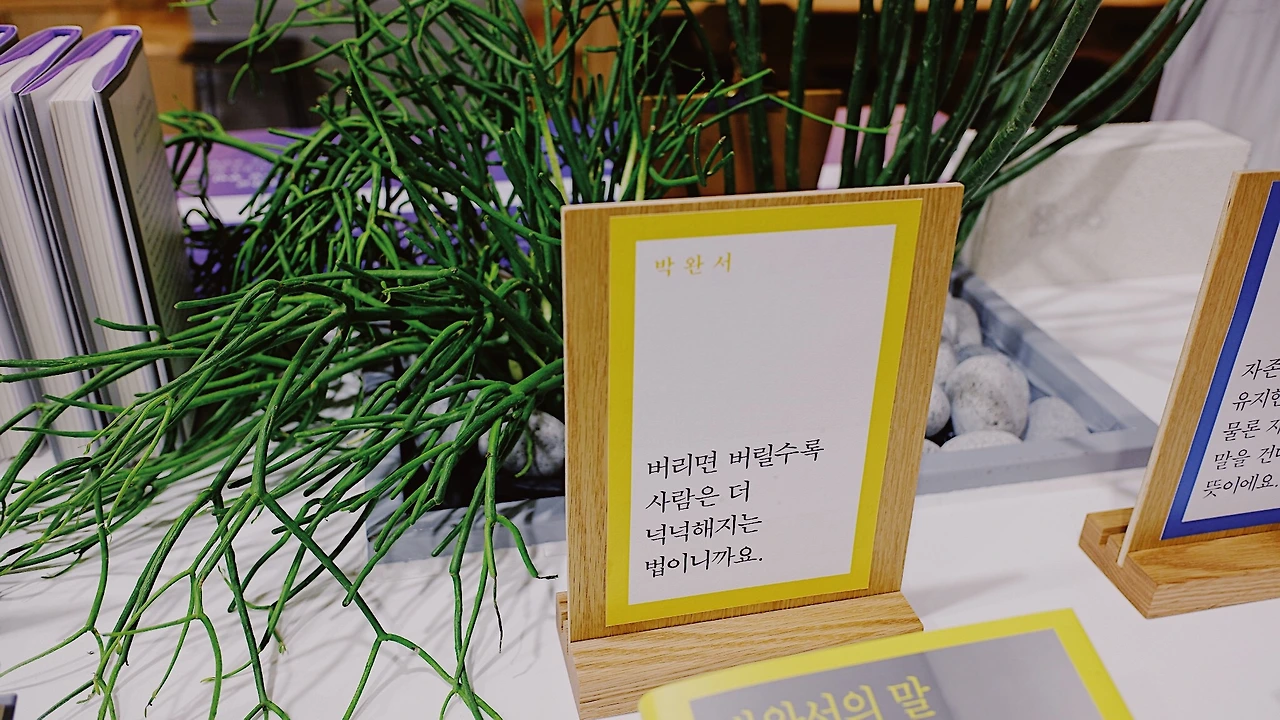 참 책 진열을 잘해두었다. 넓은 공간에 여러 구획을 만들고, 각 구획마다 테마를 정해 이것저것 꾸며두었는데 좋은 문장을 많이 배치해 책을 사고 싶은 욕망을 절로 불러일으키는 공간이다.