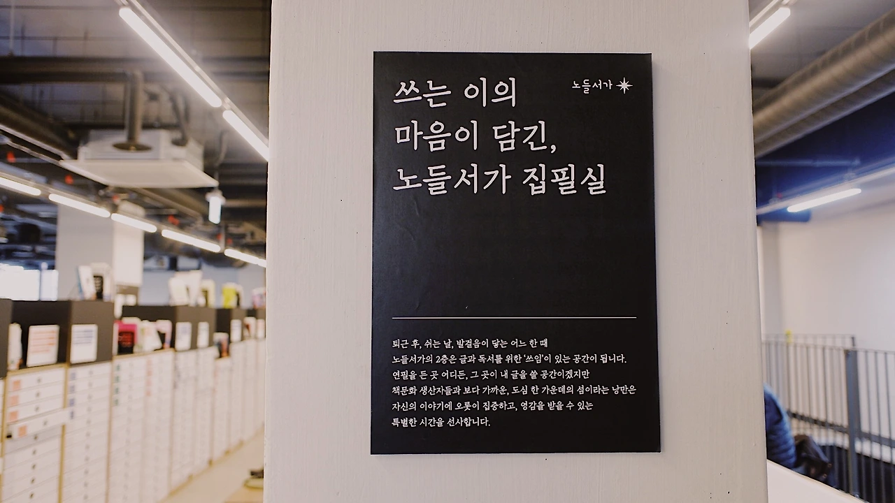 노들서가는 이 예쁜 이름에 어울리는 공간일까? 결론부터 말하면 그렇다. 서가 곳곳 세심하게 신경 쓴 흔적이 가득하다. 어떤 마음으로 공간을 기획하고 문장을 만들고 책을 골랐을까.