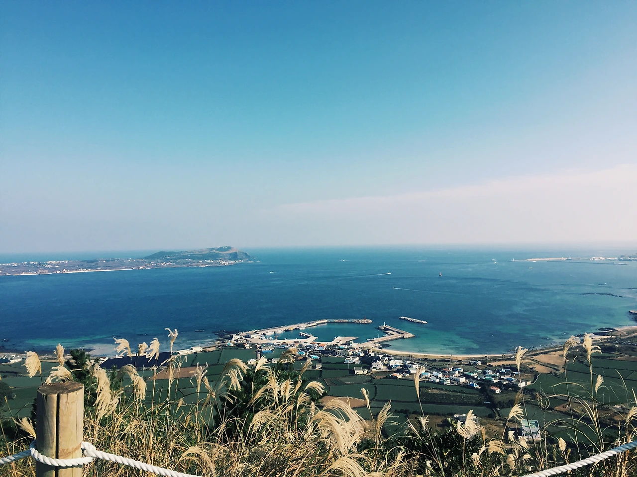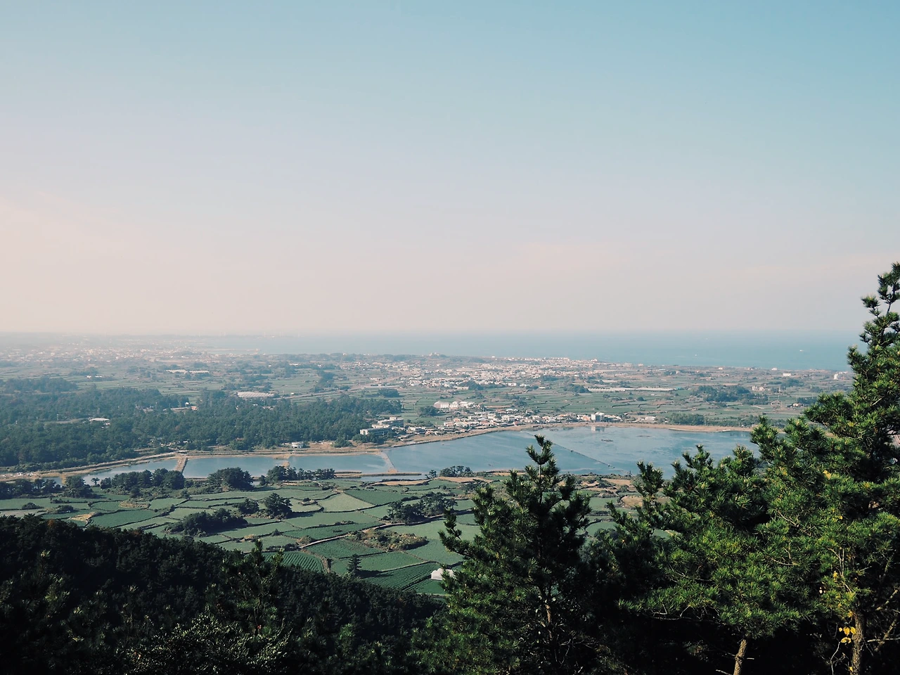 (ⓒ 2015 NOODLE / 정상에서 만나는 종달리 풍경. 왼쪽으로 우도가 보인다.)