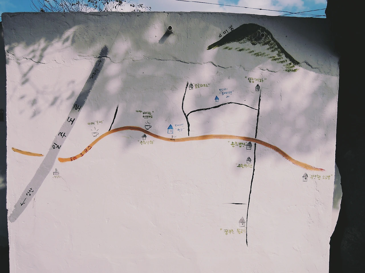 (ⓒ 2015 NOODLE / 해녀박물관 쪽으로 모여있는 게스트하우스와 식당들의 위치를 알리는 표지판)