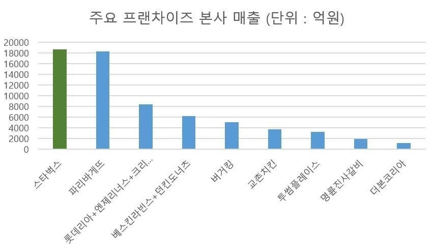 거기에 프랜차이즈 본사 매출로 보자면 파리바게뜨보다도 더 높습니다. 물론 가맹점을 포함하면 가맹점이 있는 다른 프랜차이즈들은 2-3배를 해야하긴 합니다만, 단일 프랜차이즈 본사만 보자면 그에 따라갈 기업이 파리바게뜨를 제외하면 없다 봐야죠.