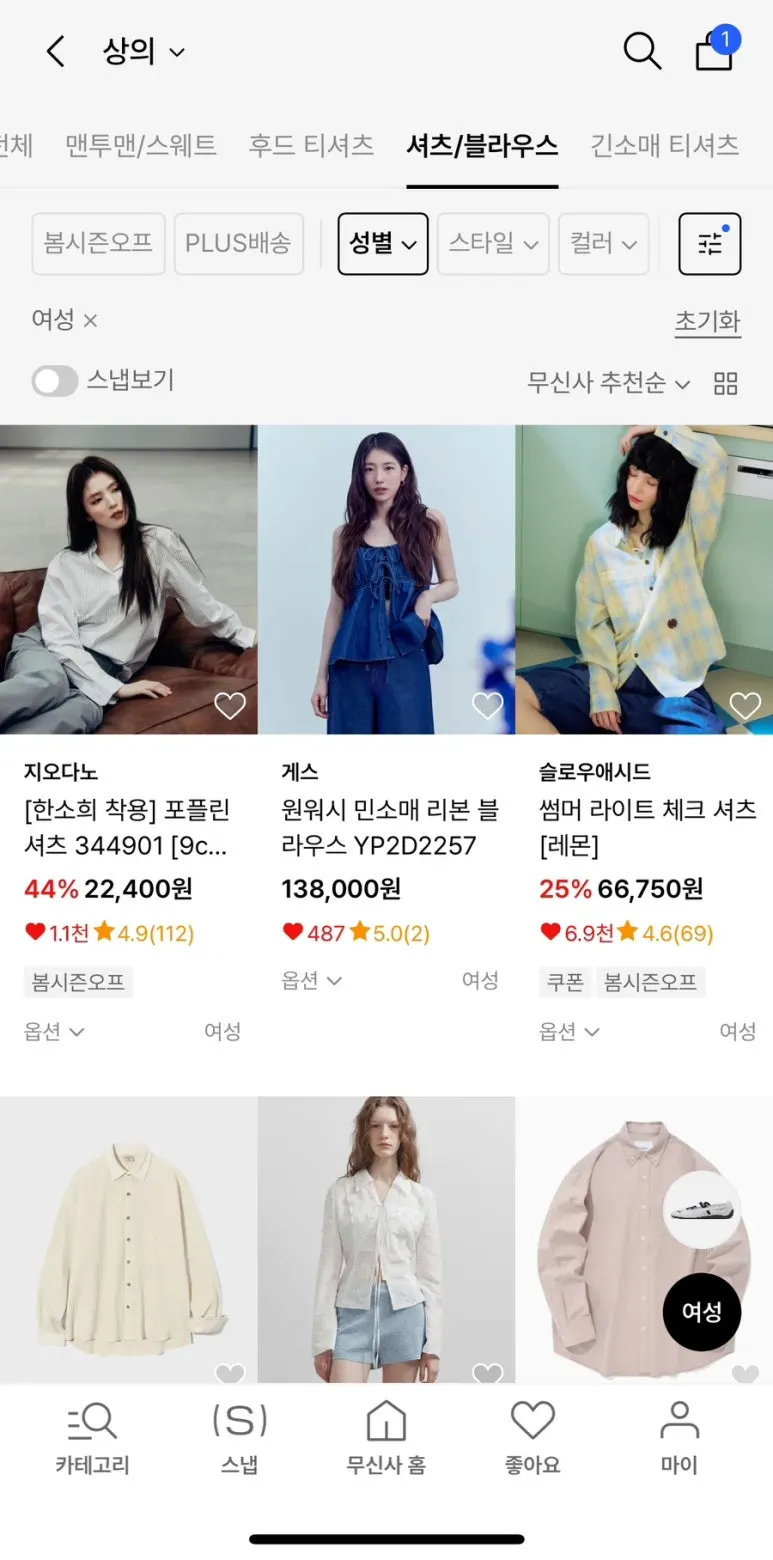 성별, 스타일, 컬러, 가격, 사이즈, 브랜드 등은 바텀시트로 올라오는 필터를 제공했다.