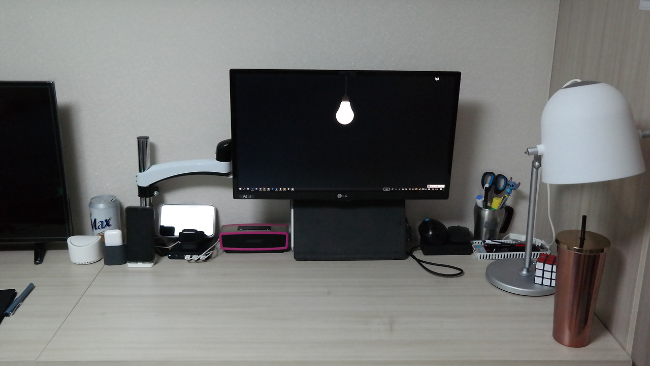 먼저, 미니멀리즘을 추구하자! 는 뭐… 미니멀리즘까진 아니더라도, 내가 필요한 것 말고는 나의 데스크는 깔끔히 유지할 수 있도록 하자. 특히, 1st Arm's Reach 공간을 깔끔히 유지해주자