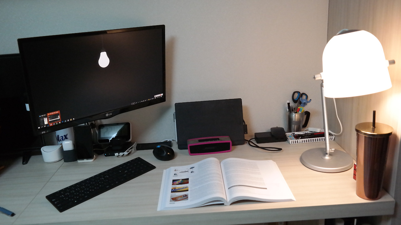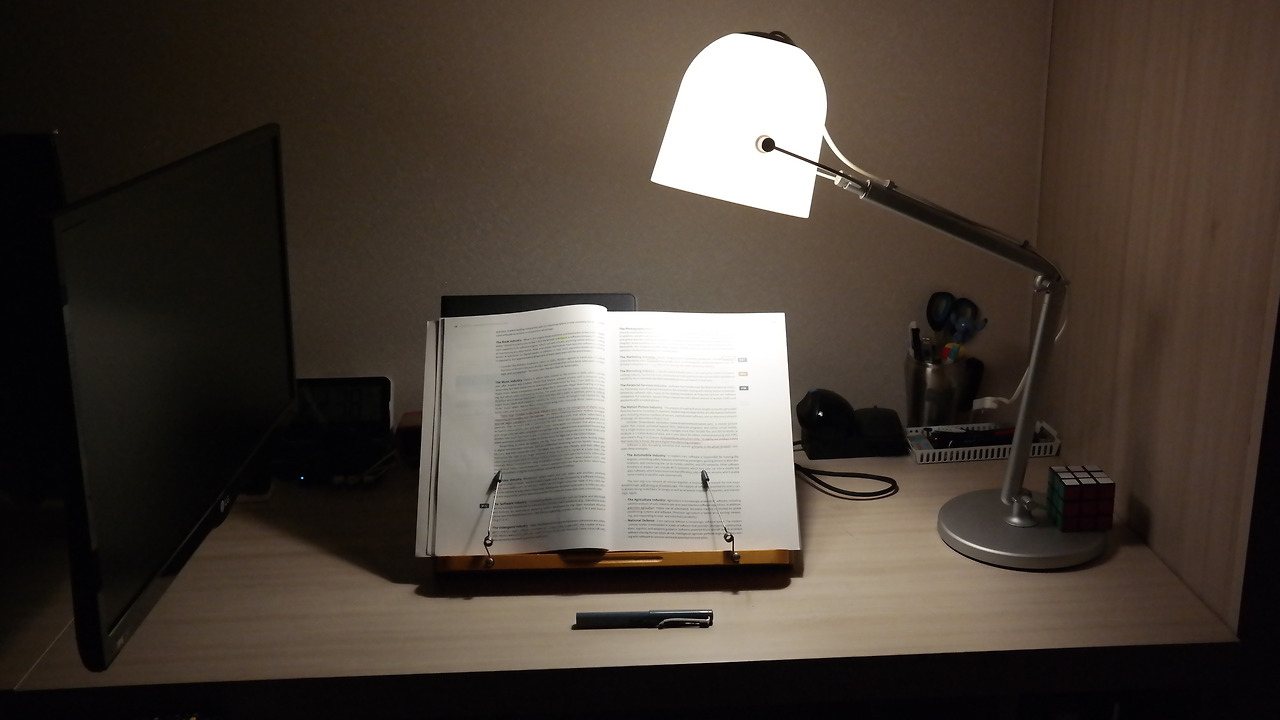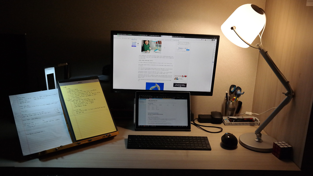 늦은 밤에 책을 보는데 컴퓨터를 활용할 일이 없으면 이렇게 세팅하고 늦게까지 작업하곤 한다.