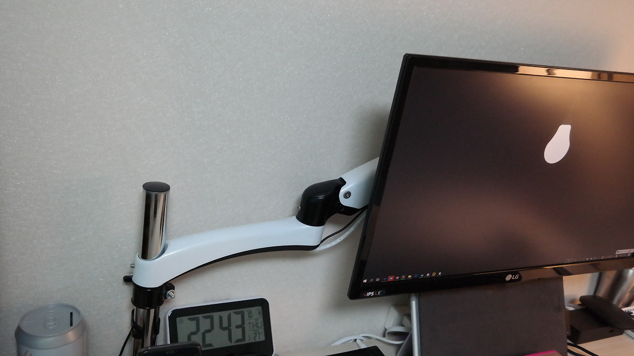 모니터암의 제일 큰 장점은 모니터를 자유자재로 움직일 수 있게 해주는 것이다. 이것을 조금만 활용하면 같은 작업공간을 다양하게 변신시킬 수 있다. 참고로 필자는 2단 모니터암을 이용한다. 베이스에 연결이 되어있는 1단은 좌우로 돌릴 수 있고 1단 암과 모니터를 연결해주는 2단 암은 상하좌우로 모니터를 조정할 수 있는 모니터암이다.