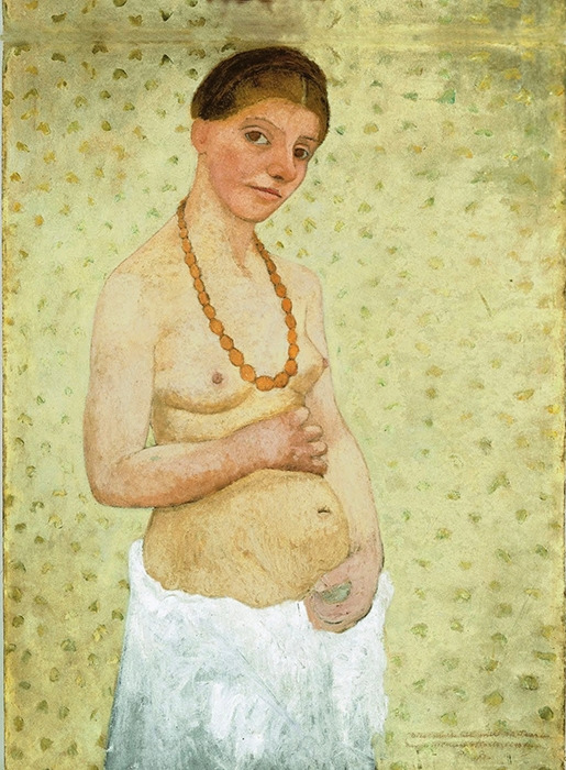 그중에서도 파울라가 근대 서양 미술의 역사에 한 획을 그었다고 평가받는 작품으로는 여성 작가로서는 최초로 그린 누드 자화상이 있다. 특히 한 작품은 임신을 했을 때 그려진 것으로 더욱 획기적이라는 평가를 받는다. 그 당시엔 여성의 누드를 그린 것은 거의 대부분 남성 작가였을 것이고, 거기에 스스로의 누드를 그린 작품이라니 그 희소성과 담대함이 당대 미술계에는 큰 충격을 가져다주었을 법하다.