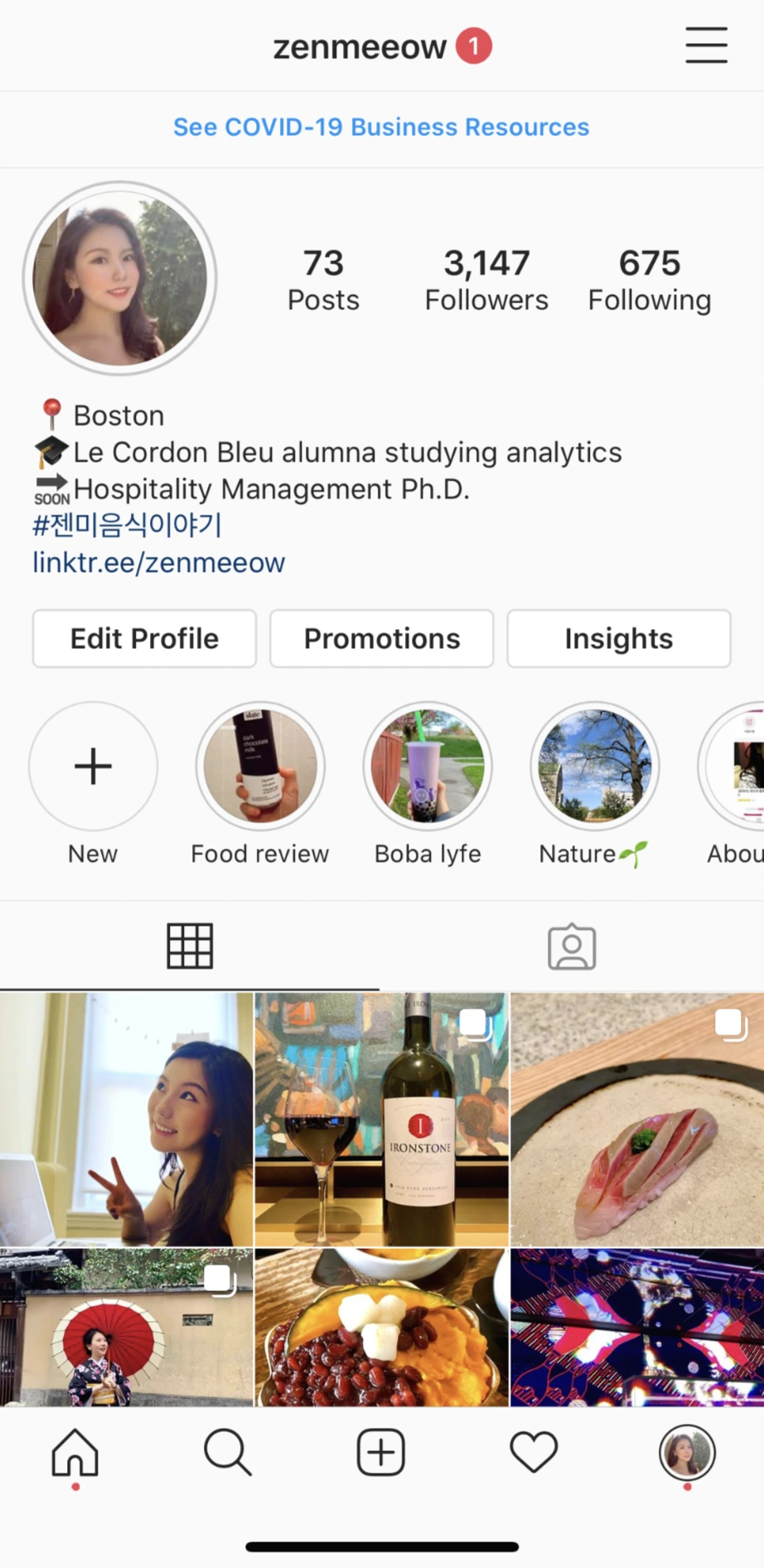 지금 저는 경영대학 안에 소속되어 있는 외식경영학 박사과정 학생이고, 검색엔진/소셜 미디어를 이용한 디지털 마케팅에 포커스를 둔 연구를 하고 있습니다. 이렇게 인스타그램 계정을 운영하는 것이 제 연구의 밑바탕과 응용이 됩니다.