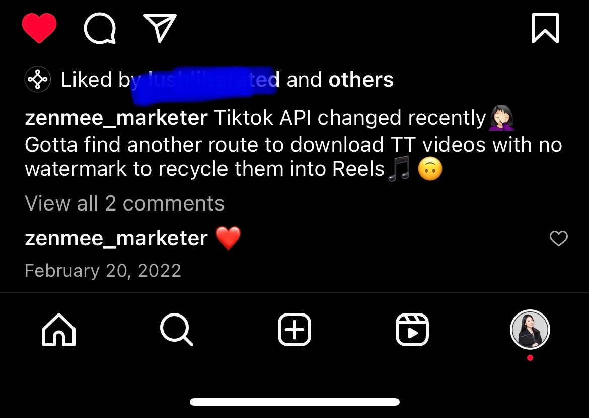 마지막으로 영상 제작 퀄리티가 좋아야 해요. 가로형인 유튜브 영상을 세로형 비디오로 재활용하느라 영상 위아래로 까만 부분이 보이면 페널티가 있는 타이밍이 있습니다. 물론 콘텐츠 자체가 너무 좋아서 이 부분까지 감내할 수 있으면 괜찮아요. 하지만 아래 캡처화면에서 볼 수 있는 숏폼 영상은 캡션에 설명만 간단하게 있을 뿐, 실제 영상은 유저들에게 큰 재미나 도움을 주지 않는 그저 그런 평범한 콘텐츠입니다.