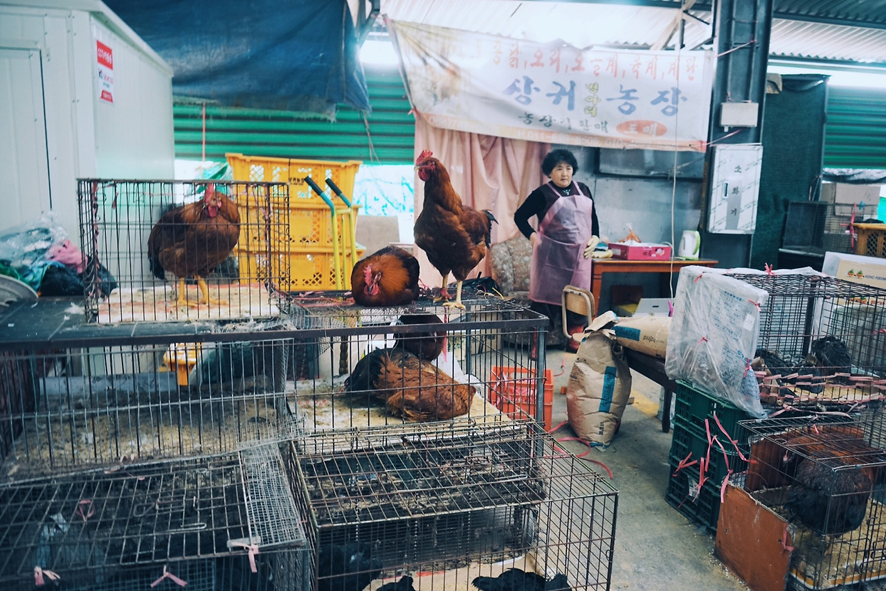 어렸을 때 시장에 오면 닭도 팔고 개도 팔았는데...