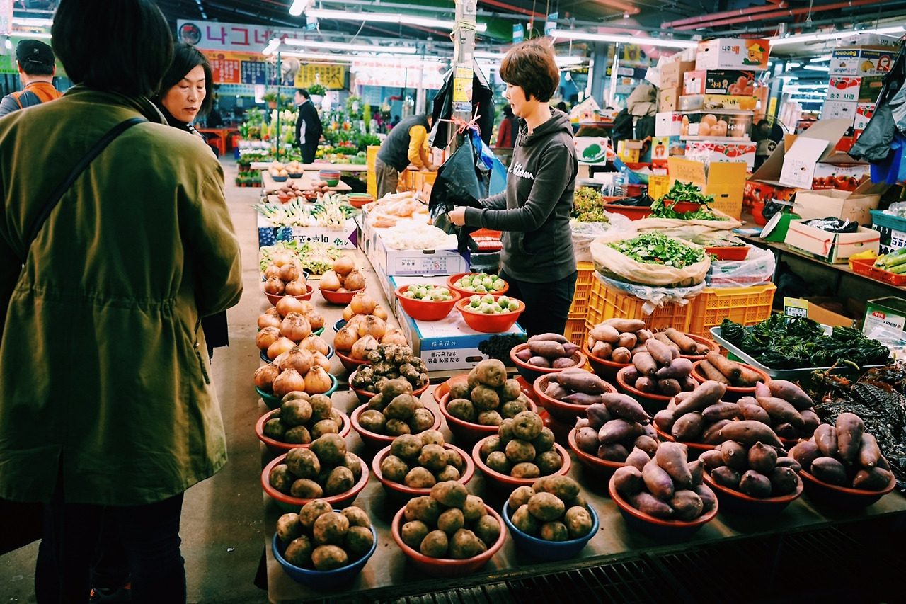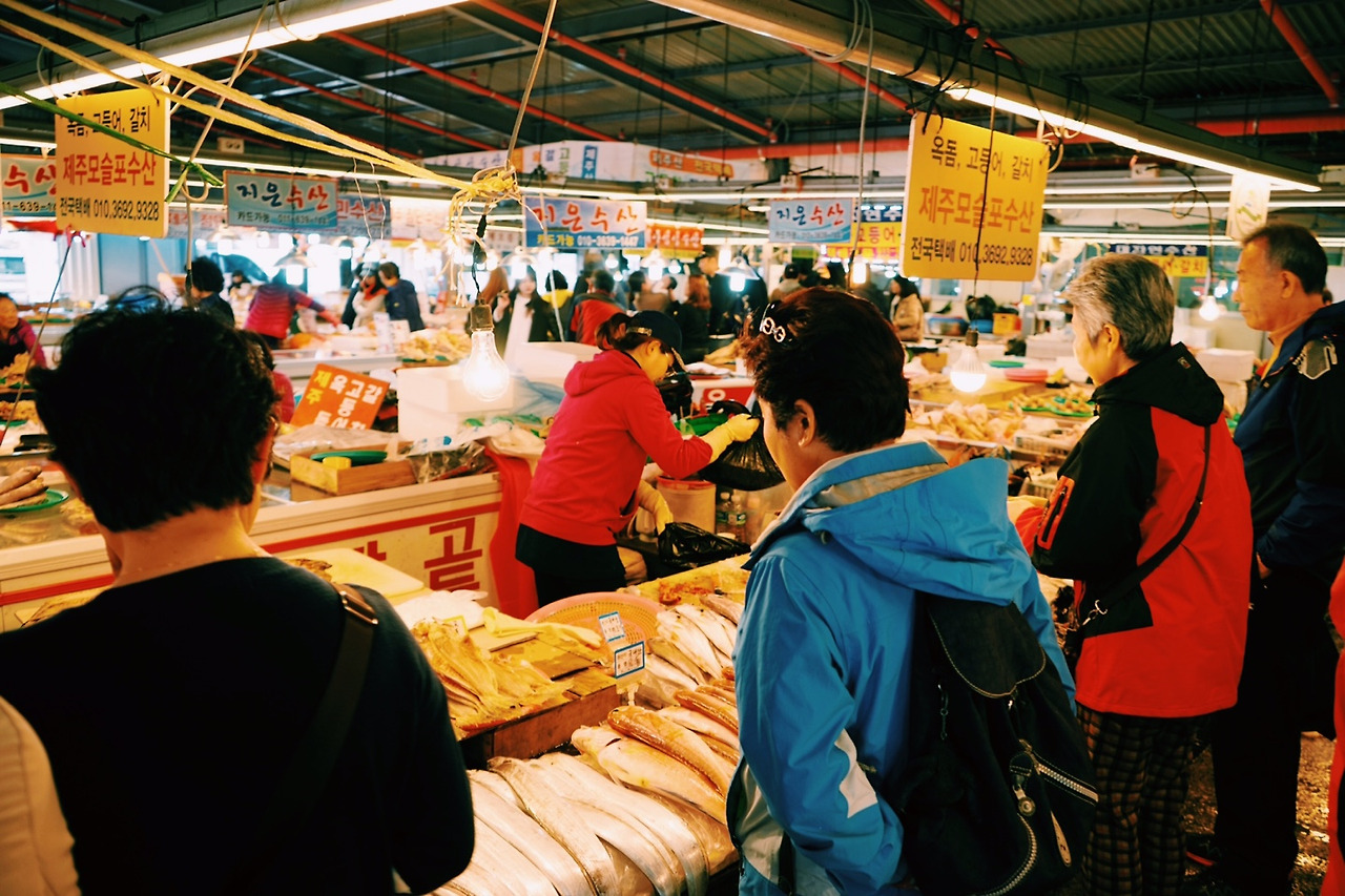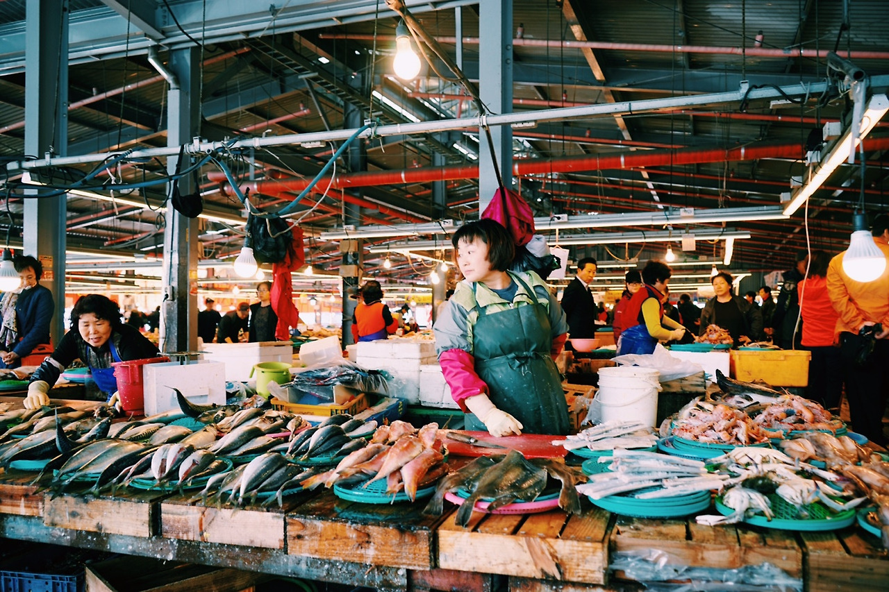 어렵게 주차를 하고 시장에 들어선다. 시장 양쪽 끝으로는 음식점이 들어서 있고 야채부, 수산부, 종합부, 청과부 등 품목별로 섹션이 구분되어 있었다. 집사람은 이게 뭐 신기하냐고 물어보는데 서울에서 태어나 군대까지 서울에서 보낸 나에게 이곳은 완전히 새로운 곳이었다.