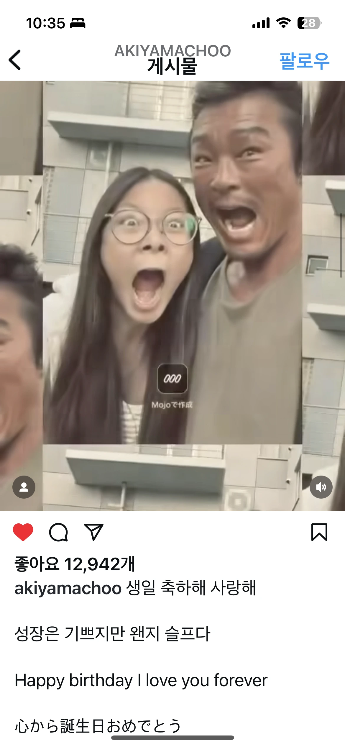 언젠가 추성훈 님이 딸 사랑이의 생일을 맞아 인스타그램 피드를 올린 적이 있었다. 두 사람이 함께 찍은 사진 아래에 걸린 짧은 문장이 눈에 밟혀 좋아요를 누르고 캡처도 해두었더랬다.