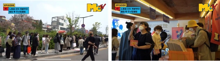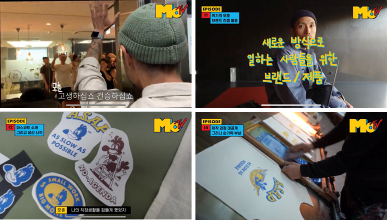 이 날 행사에 참여한 사람 대부분은 MoTV 라는 유튜브 채널의 구독자입니다. 라인프렌즈 디자인 팀장으로 일하던 ‘모춘’은 자신만의 브랜드를 만들어보겠다며 2019년 8월 퇴사를 결심했고, 그 이후 퇴사 송별회부터 브랜드 기획, 캐릭터 디자인, 제품 제작까지 모든 과정을 유튜브로 공개하며 구독자들과의 소통을 이어왔습니다.