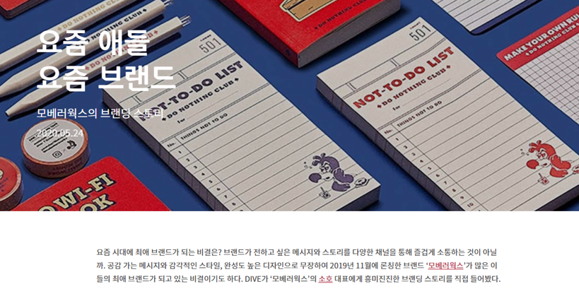 이 행사는 새로운 방식으로 일하는 사람들을 위해 유쾌한 물건을 만드는 브랜드 '모베러웍스'에서 기획한 노동절 이벤트였는데요. 핫한 문화 트렌드를 소개하는 ‘현대카드 DIVE’ 를 포함해 여러 미디어에서 이미 다루었을 정도로 신선한 브랜딩 사례로 주목받고 있는 브랜드입니다.