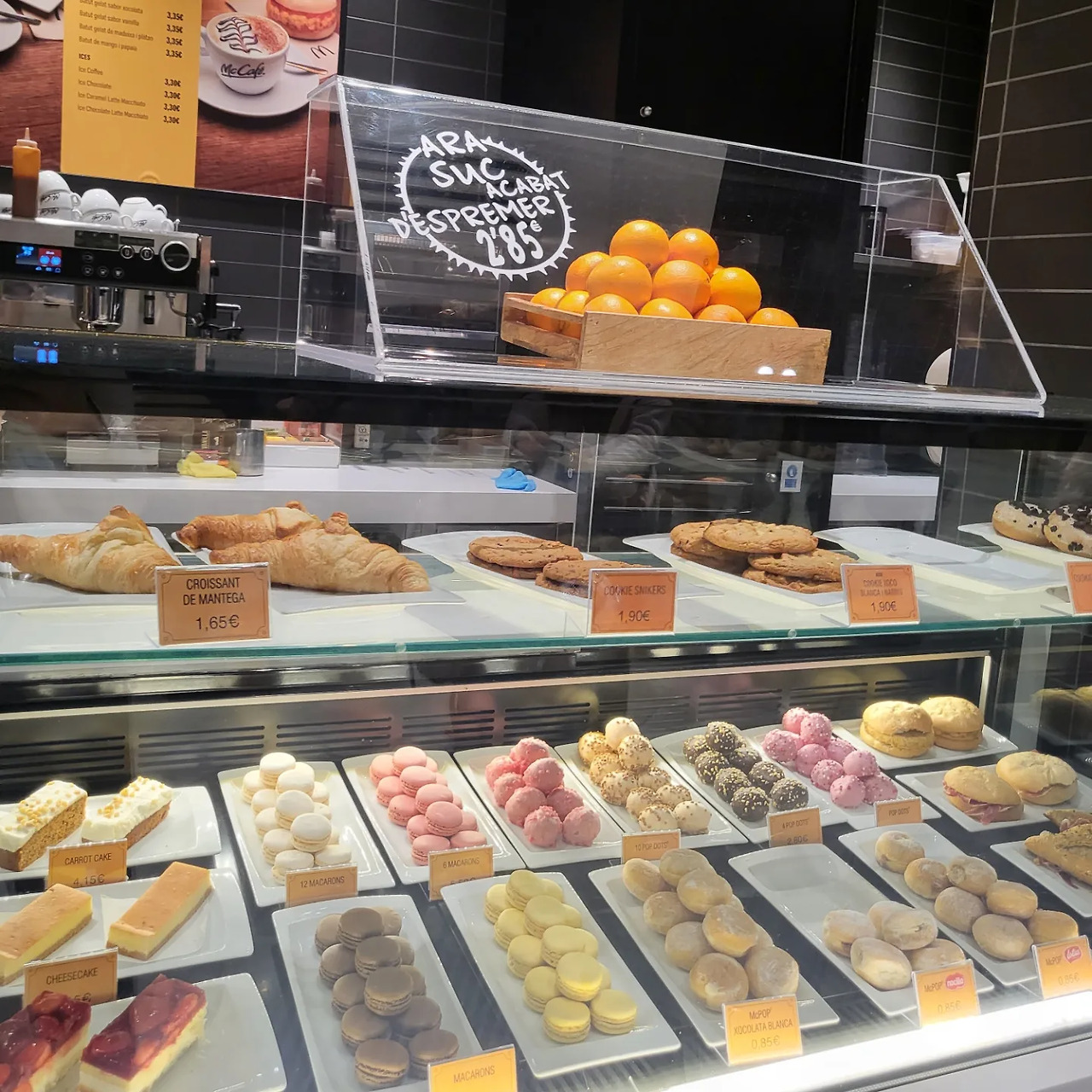 맥도널드에서도 역시 주스를 주문하면 오렌지를 바로 착즙 해서 준다. 굉장히 신선하고 달콤하다. 맥도널드에서 마카롱과 다양한 디저트메뉴도 고를 수 있다.