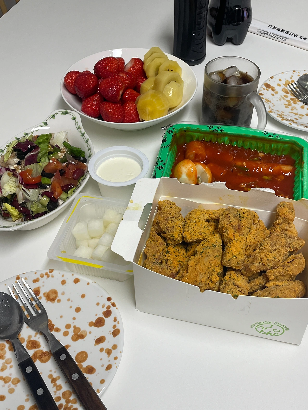 치킨과 함께 먹을 떡볶이와 과일을 준비해 온 아랫집 언니랑 한창 근황토크를 하고 거실 한편에 모여있는 나의 상처 소독 재료들을 보여줬다. 잊고 있었는데 언니는 간호사 출신으로, 현재도 병원에서 근무하고 있다. 언니 덕분에 포비돈도 그냥 쓰면 안 된다는 걸 알게 되고, 언니 집에 있던 멸균 면봉을 갖다 주셔서 거기에 도포해 상처부위를 소독했다. 아침에 넘어져서인지 상태가 안 좋은 다리를 보며 속상했지만 그래도 꿋꿋이, 꼼꼼히 소독을 마쳤다.