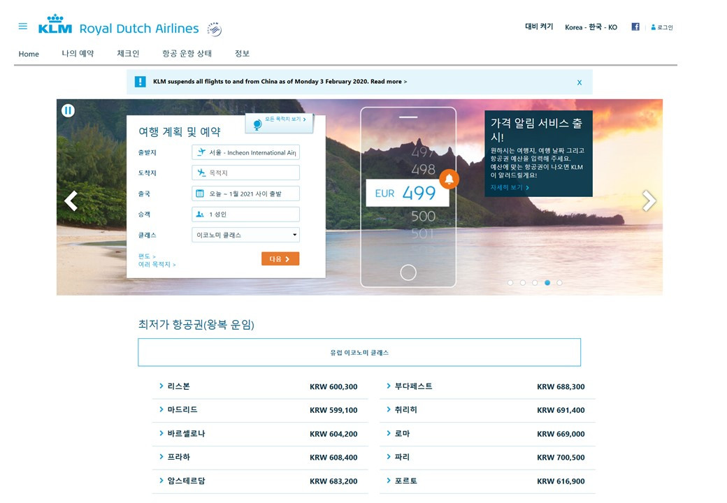나는 KLM네덜란드항공, 루프트한자, 에어차이나, 중국남방항공, LOT폴란드항공, 카타르항공, 에미레이트항공의 정보를 받아서 보고 있다.