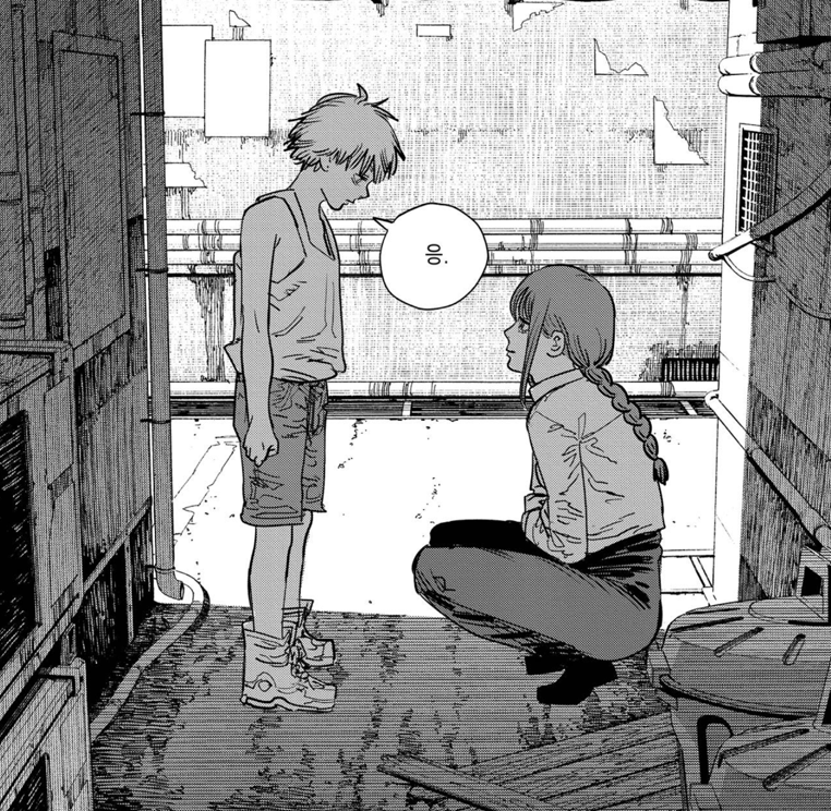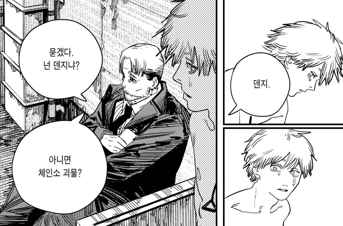 덴지는 바로 그런 결핍의 상징입니다. 그는 부모를 잃고 빚에 시달리며 근근이 살아갑니다. 그에게는 욕망은 단순한 탐욕이 아닌 생존욕구 그 자체죠. 자신처럼 죽어가는 포치타를 만났을 때 그는 동질감을 느끼고 피를 나눠주며 계약을 맺습니다. 이후 그들은 함께 생활하며 식빵 한 조각조차도 소중히 나누며 살아가죠.