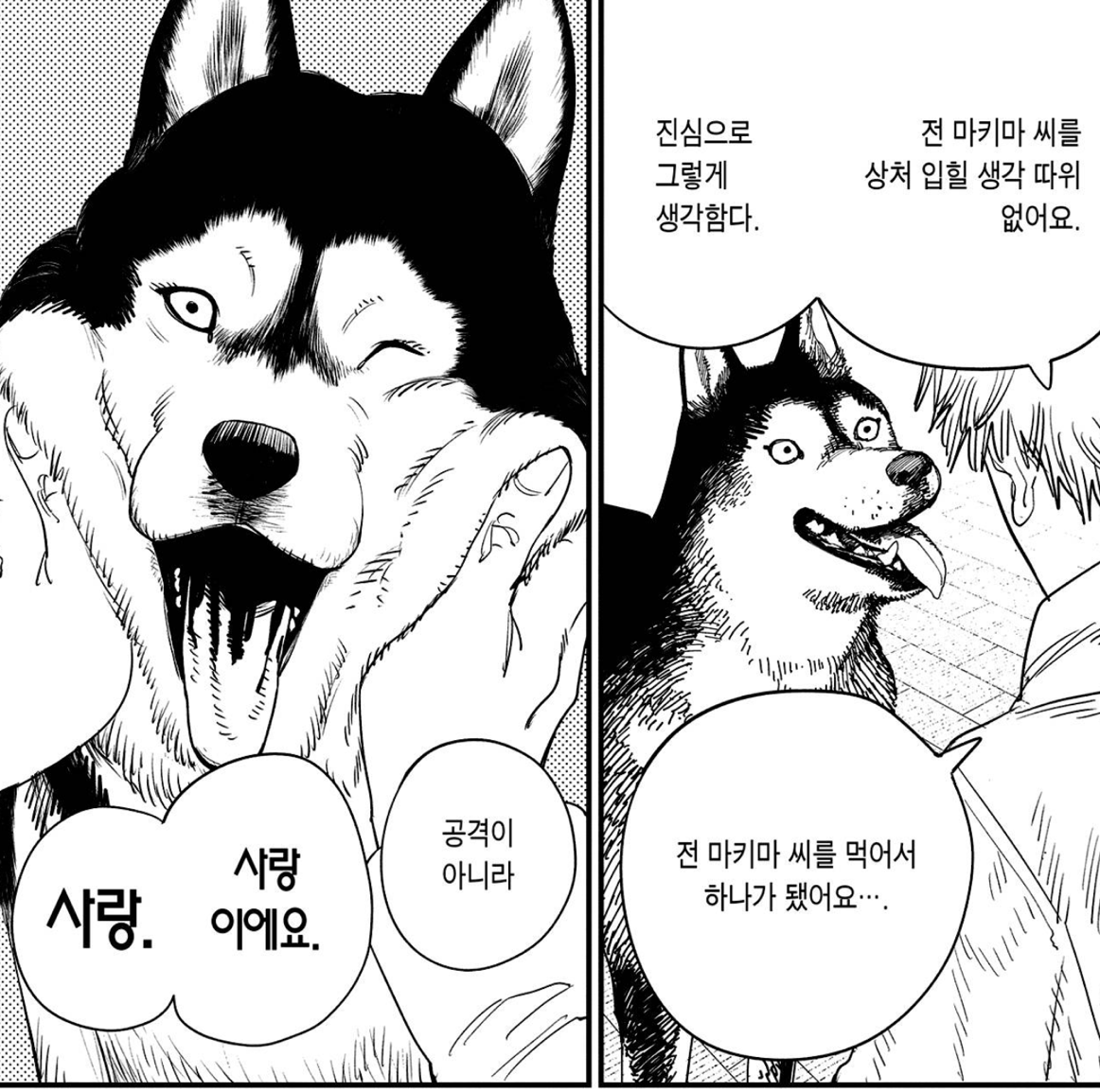 덴지는 마키마 씨의 전부를 삼키며 사랑했던 이를 탐구합니다. 먹음으로써 그녀와 하나가 되고 싶다는 가장 원초적인 욕망이자. 어떤 방식으로든 함께 있고 싶다는 마음이죠. 그리고 이 모든 것은 마치 짝사랑의 은유 같기도 합니다.