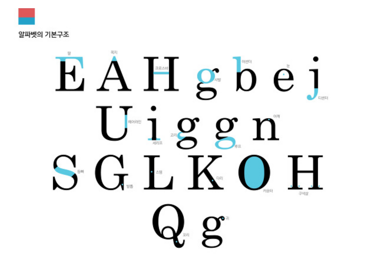 * 짝대기 : 타이포그라피 용어로 크로스바(Crossbar)로