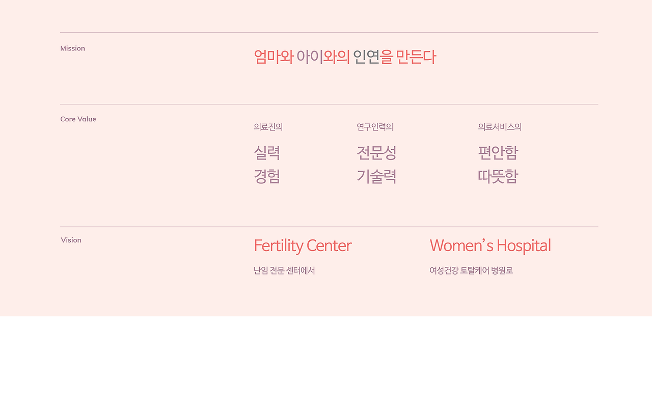 난임전문센터를 넘어 여성전문병원으로 발돋움하는 비전을 염두해 둔 디자인이기도 합니다. 또한 영문타입의 워드마크라서 국제적인 이미지를 담아낼 수 있다는 장점도 있습니다.