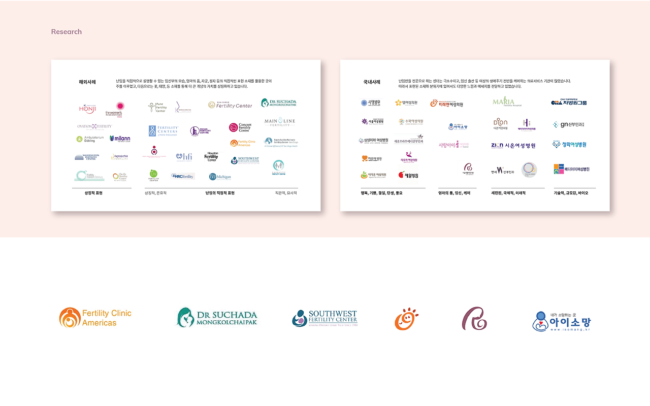 경쟁할 기존 난임센터들의 시각적 소재들을 찾아보니 모두 비슷 비슷한 형태의 로고를 사용하고 있었습니다.