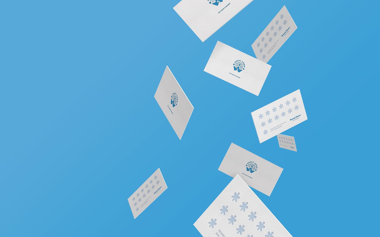 브랜드의 색상은 기본적으로 아름다운 눈꽃처럼 순백의 아름다움을 지닌 White를 기본 배경으로 합니다. 그 느낌을 더욱 강조하기 위해 밝은 톤과 중간 톤의 Blue를 보조적으로 활용하였습니다.