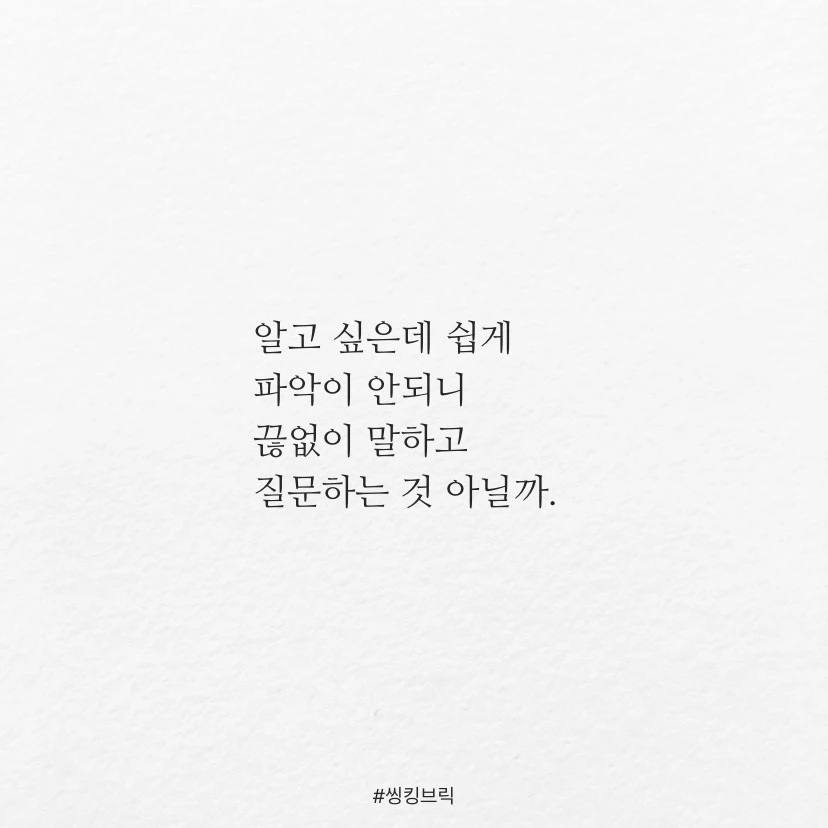 알고 싶은데 쉽게파악이 않되니끊임없이 말하고질문하는 것 아닐까.