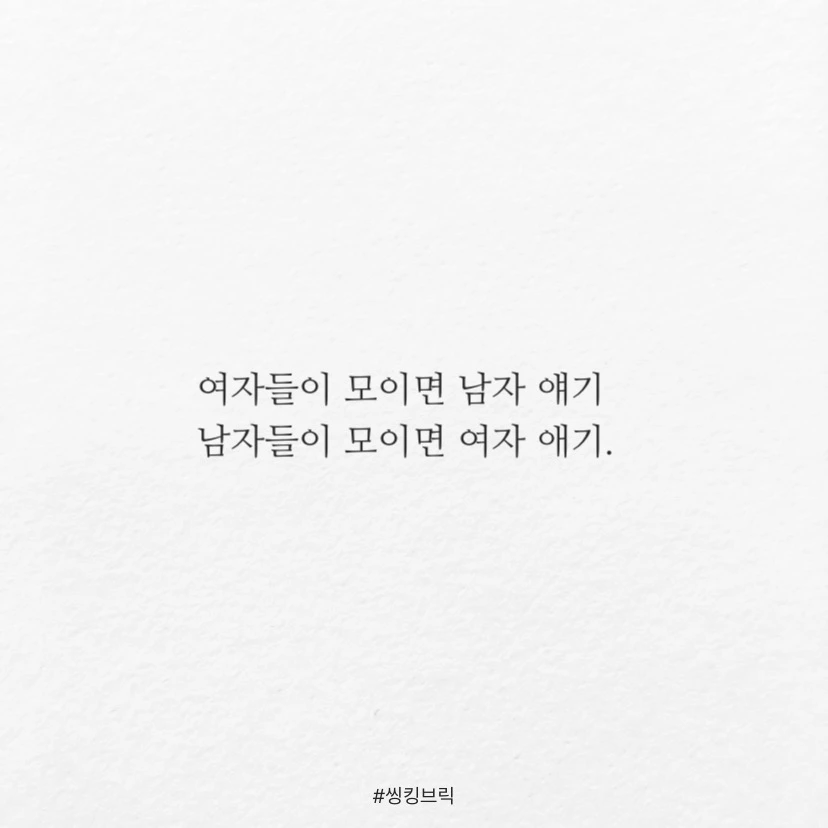 여자들이 모이면 남자 얘기남자들이 모이면 여자 애기.