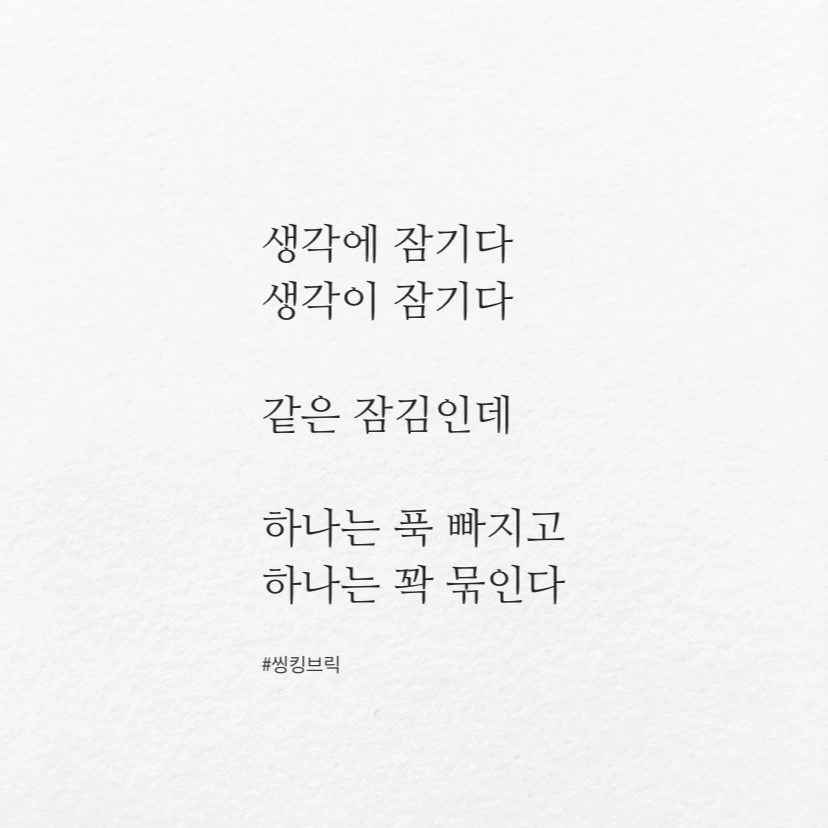 꽉 묶인 생각보다는 푹 잠김 생각이 좋습니다.