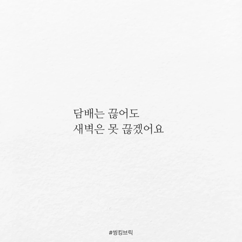 담배는 끊어도 새벽은 못 끊겠다는 말을 장난스레 해왔습니다. 실제로 십년 피우던 담배는 끊은지 십년이나 됐는데 새벽은 아직 못 끊고 있습니다. 딱히 취미랄게 없는 제게 그것마저 끊으면 정말 인생의 낙이 없어질 것 같아서요.