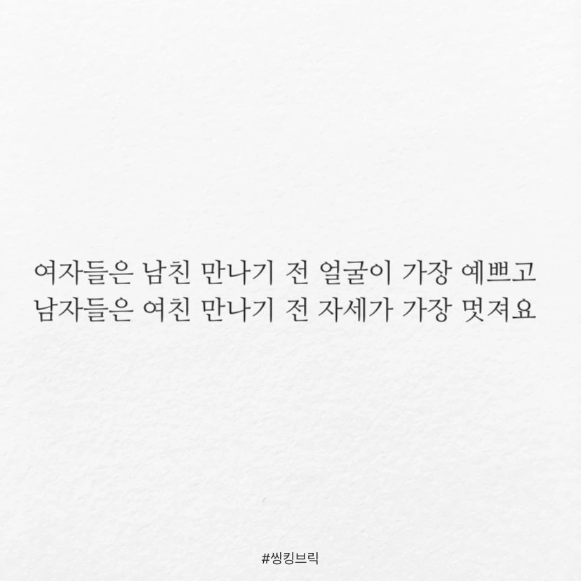 여자들은 남친 만나기 전 얼굴이 가장 예쁘고남자들은 여친 만나기 전 자세가 가장 멋져요.