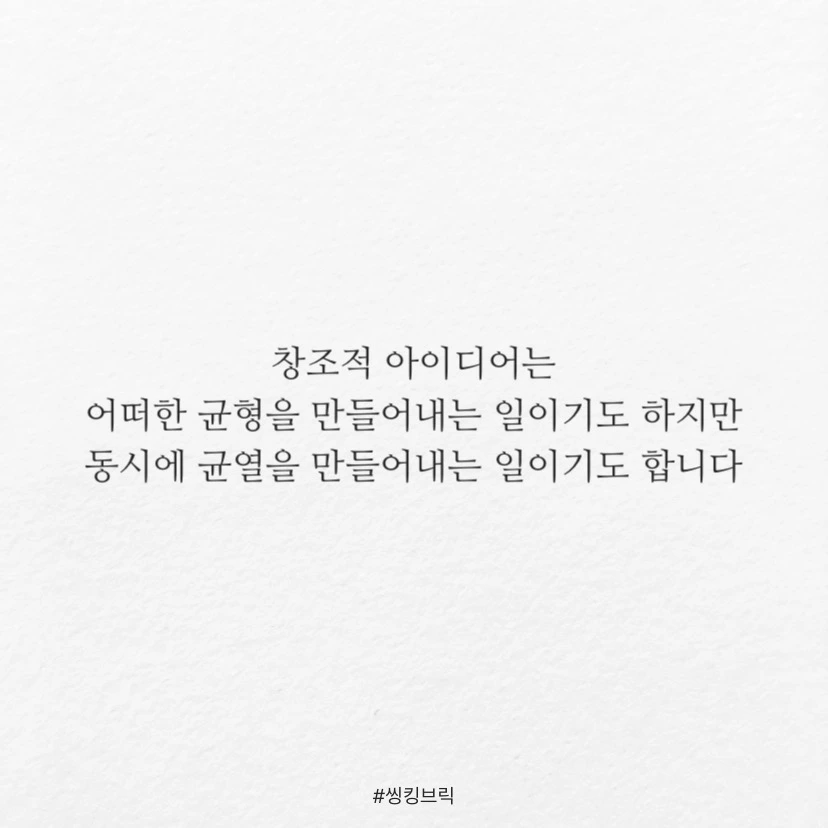 창조적 아이디어는 어떠한 균형을 만들어내는 일이기도 하지만동시에 균열을 만들어내는 일이기도 합니다.균형만 잡고 있으면 지루하고균열만 일으키면 불안합니다.