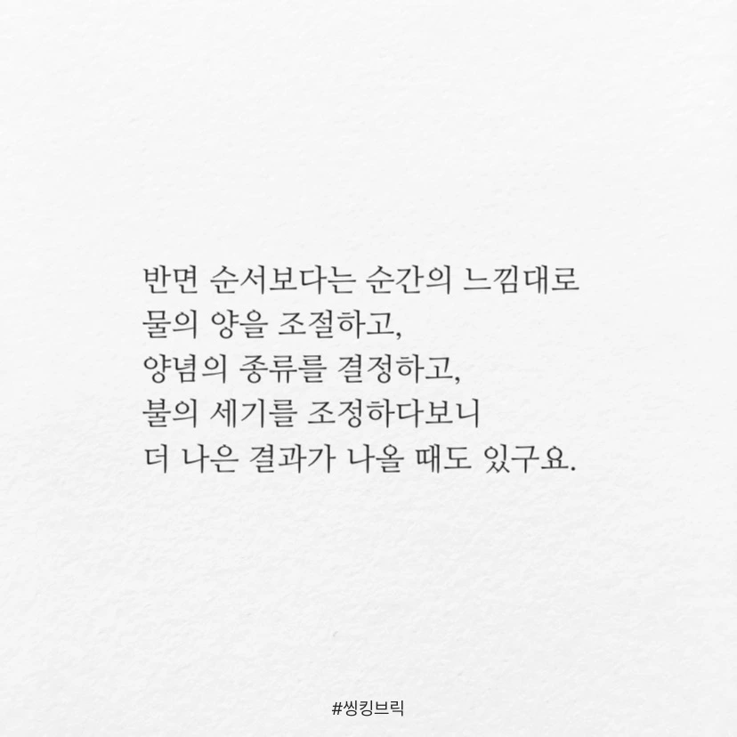 감각의 레시피를 일컫는 말이겠죠.