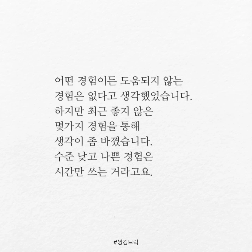 생각이 좀 바꼈습니다. 수준 낮고 나쁜 경험은