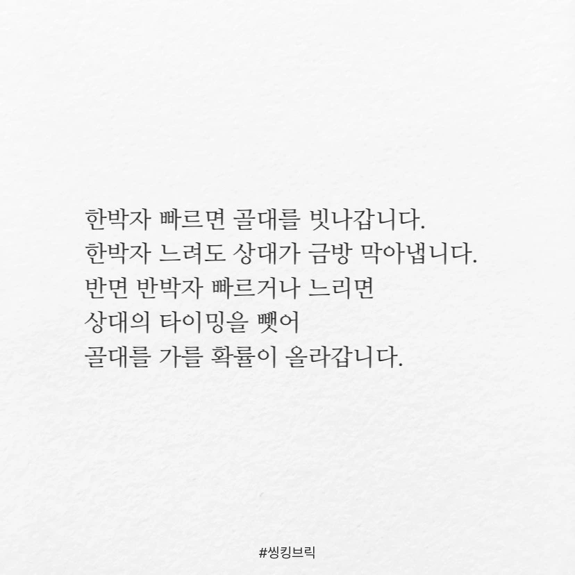 한박자 빠르면 골대를 빗나갑니다.