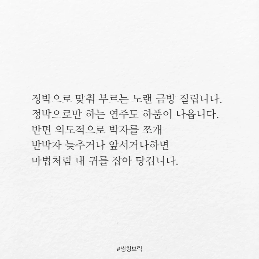 정박으로 맞춰 부르는 노랜 금방 질립니다.