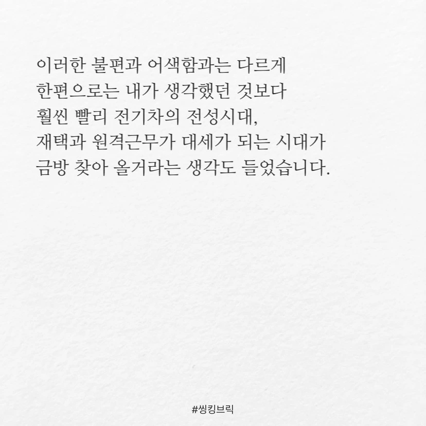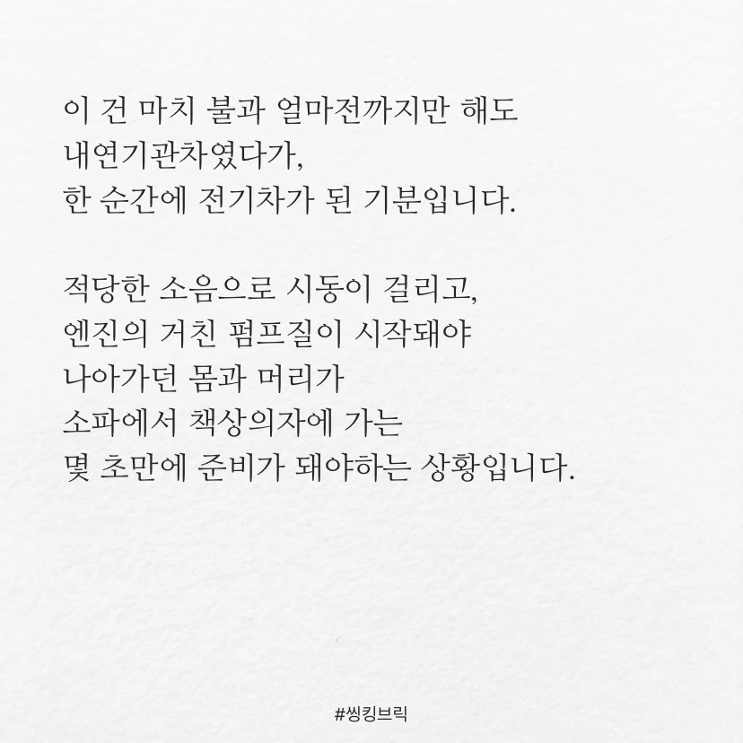 한 순간에 전기차가 된 기분입니다.