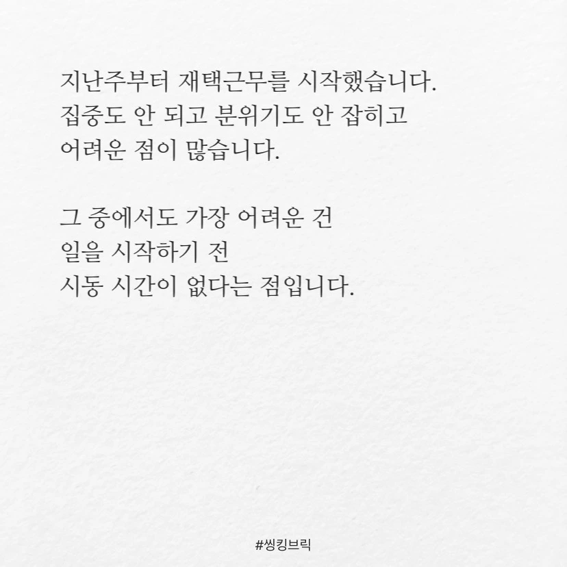 지난주부터 재택근무를 시작했습니다.