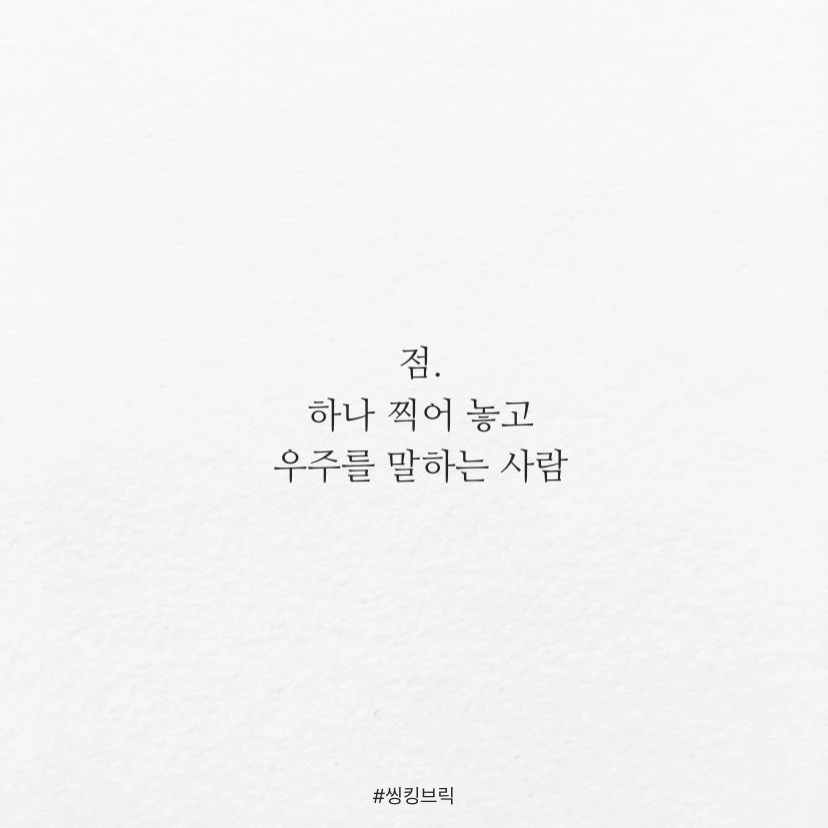 ‘점. 하나 찍어 놓고 우주를 말한다고하는데실은점. 하나면 우주를 충분히담아낼 수 있어요.’저는 이 말이브랜딩 작업의 묘미를가장 잘 설명하는 게 아닐까 생각합니다.브랜드의 정신과 철학을 점 하나로 상징화하는 일.몇 가닥의 선으로 은유하는 일.단순하고 작게 표현할수록더 크게 담아 낼 수 있는 역설.바로 브랜딩.그래서 파도 파도 끝이 없고 해도 해도 새로운 영역이 아닐까 합니다.#씽킹브릭
